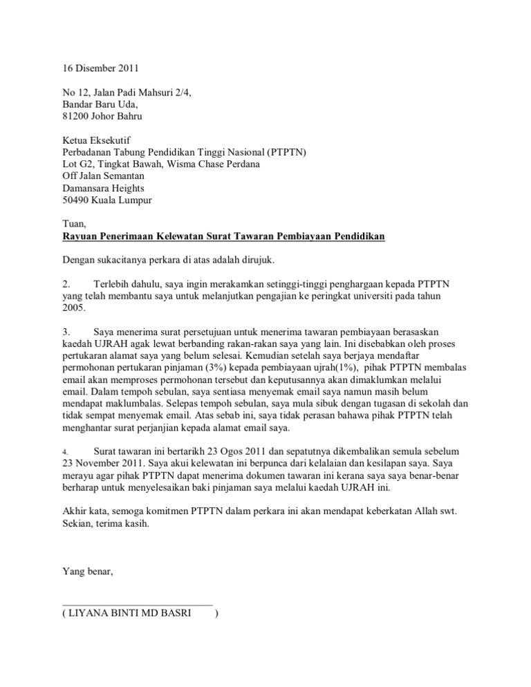 Kumpulan Gambar Contoh Surat Rayuan Untuk Mengurangkan Kompaun Terbaik 2019. Memohon tangguhan pembayaran adalah satu cara sebagai. Perbadanan Tabung Pendidikan Tinggi Nasional Tingkat Bawah Menara PTPTN Blok D Megan Avenue II No.